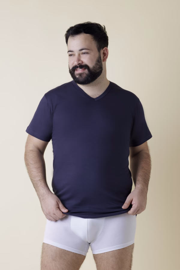 Maglia intima uomo mezza manica scollo a V extralarge in 100% puro cotone jersey pettinato soffice sulla pelle, fresco e leggero.