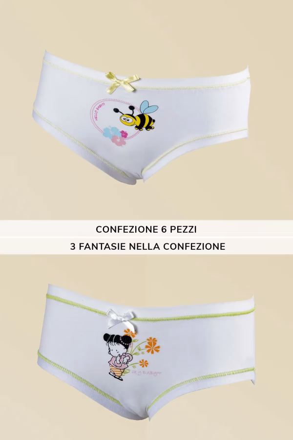 6 Slip Bimba Cotone Bielastico Fantasia Sonia