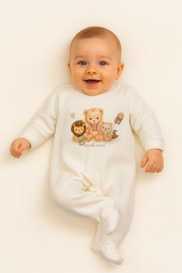 Tutina Neonato Marcluis 100% Cotone – Stampa “Piccoli Amici”